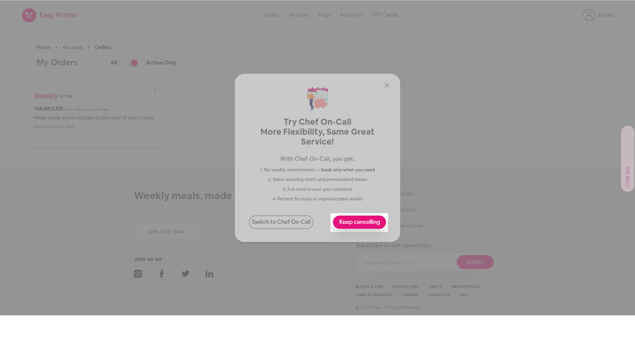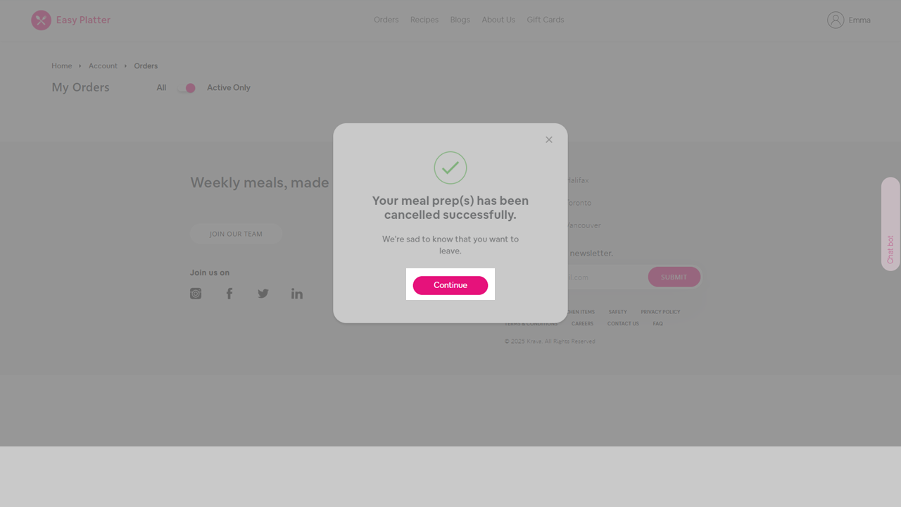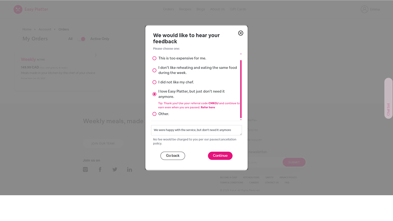Choose a feedback option and share what you feel Easy Platter could have done better in the bottom textbox. Click ‘Continue’